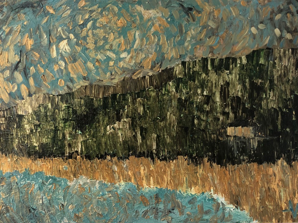 This painting is not about stillness, even though the house does not move. It is about the currents of energy that pulse through all things – the shifting air, the slow retreat and return of the tide, the quiet pressure of time pressing down upon the land. These unseen forces are what hold everything together. You cannot touch them, but you can feel them.